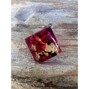 Murano Glass Square Pendant With Red & Gold Flake Design Made In Italy