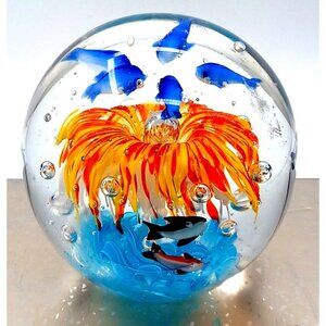 Murano Glass Tropical Fish Aquarium Art Paperweight 4.5" X 4.15" Handcrafted Wit