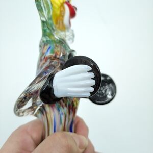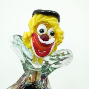 Murano Glass Vintage Made in Italy Standing Clown with Cymbals Hand Blown Multicolor with Glitter. Very fun, uniquely designed clown. Very well made with much attention to detail. There are some light imperfections but no major chips or cracks. No markings or stickers.