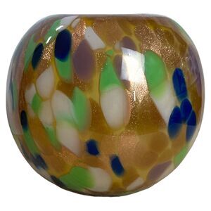 Murano Hand Blown Art Glass Vase 6.25x7" Gold Cased Round Globe Italy