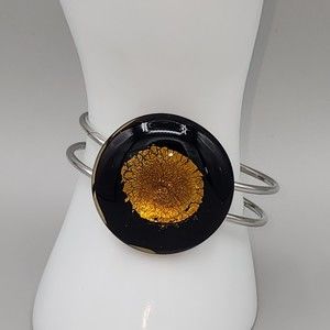 Murano Inspired Black & Gold Foil Statement Clamper Bracelet 8 1/2". Cannot confirm Murano but it did arrive in my Murano shipment. Beautiful statement bracelet. In great pre-owned condition.