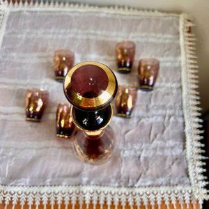 Vintage Murano Decanter, Italian Glass Decanter and Shot Glasses, Handmade Glass, Hand Painted Glass, Wine Decanter, Vintage Glass.