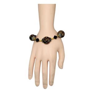 VTG Murano Italy Swirl Multicolor Glass Bead Chunky Bracelet 9" Rare 19mm Trendy