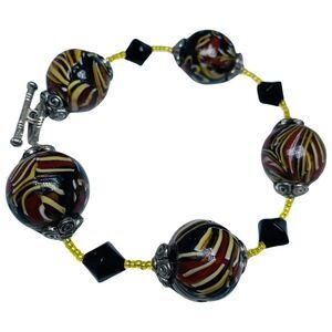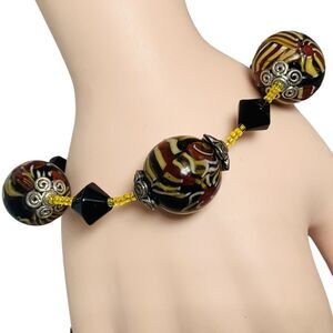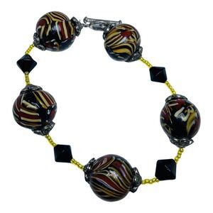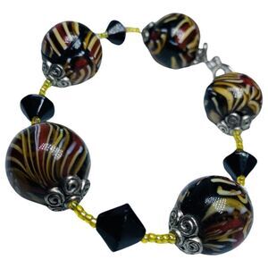 Murano Italy Swirl Multicolor Chunky Glass Bead Bracelet 9" Rare 19mm Trendy