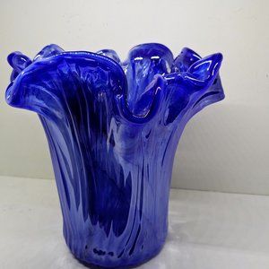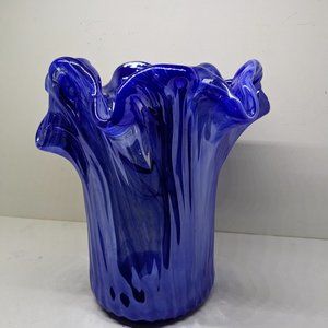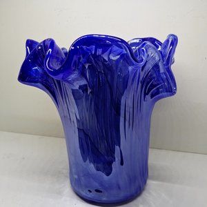 Murano Lavorazione Arte Swirl Blue 9 1/2" Heavy Art Glass vase.