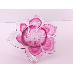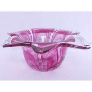 Murano Lavorazione Vintage Art Glass Pink Tulip Petal Vase / Candle Holder