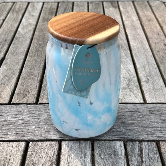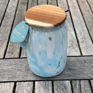 Murano Light Pastel Blue Confetti Glass Jar with Acacia Lid BPA Free Storage New