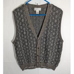 Murano M Wool Blend Sweater Vest Mens Brown Gray Knit Geometric Vintage Italy