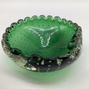Murano MCM Handblown Bullicante Emerald Green Glass Ashtray/Bowl