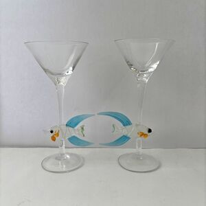 Murano Martini Fish Stem Martini Glasses Set 4 Tropical Barware Island Cocktail
