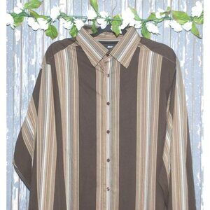 Murano Men's Dress Shirt Size Big & Tall 2XT Brown Stripe French Cuffs Career