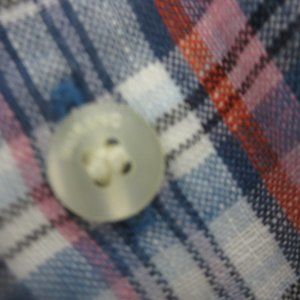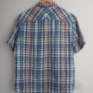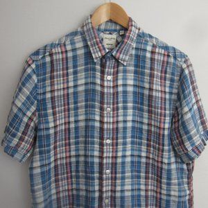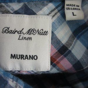 Murano Mens L Blue Plaid Baird McNutt Irish Linen SS Button Front Shirt Classic