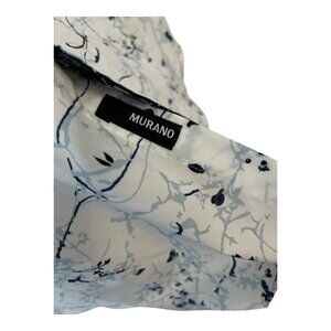 Add a bold yet refined touch to your wardrobe with this Murano men's button-up shirt. Featuring an allover abstract floral print in shades of navy and gray on a white background, this shirt is tailored in Murano's "Modern Comfort" fit—designed with subtle tapering from chest to waist for a more streamlined silhouette without sacrificing ease of movement.