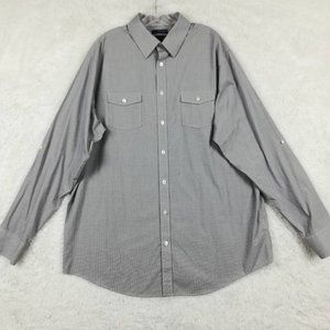 Murano Mens Button-Up Shirt Gray Tattersall Long Sleeve Pockets Big & Tall XLT