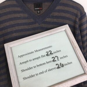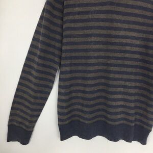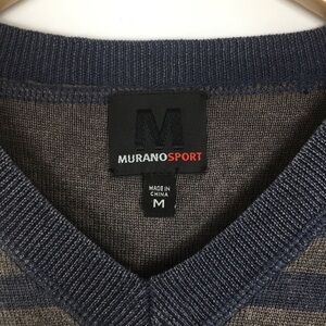 Murano Men’s V-Neck Merino Wool Sweater Gray Stripes Size Medium Long Sleeves