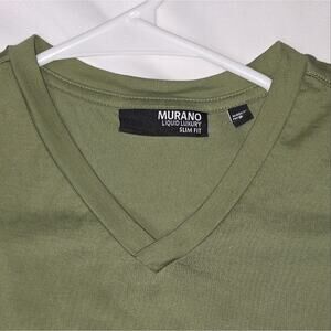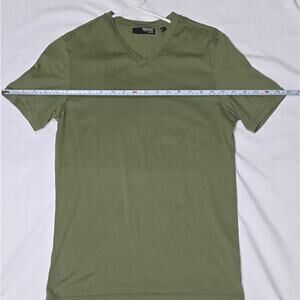 Casual olive tee with a V-neck design. Soft fabric for everyday comfort. Ideal for relaxed style.