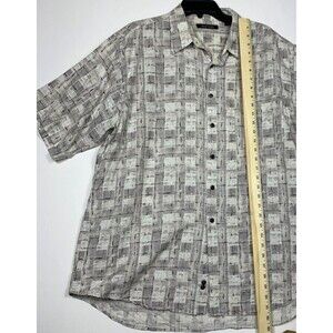 Murano Shirt Mens XL Beige Gray Linen Blend Button Up Short Sleeve Spring Summer
