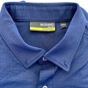 Murano Slim Fit Performance Button-Down Shirt LG Navy Blue Stretch Normcore Dad