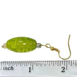 Murano Style Art Glass Bead Earrings Lime Green Gold Plated Crackled Glass Balls