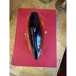 This striking hand-blown glass dolphin adds a splash of coastal charm to any space. Crafted in the Murano style, it features dynamic lines and a stunning blend of amber, cobalt blue, and clear glass. Whether displayed on a bookshelf, used as a paperweight, or gifted to a sea life enthusiast, this elegant dolphin brings color and movement into your decor. Its graceful arched form captures the essence of ocean life, making it a perfect accent for beach-inspired homes or curated glass collections.