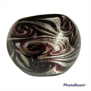Murano Style Art Glass Dome Cocktail Ring Size 7 8 Purple Silver Vintage Stock