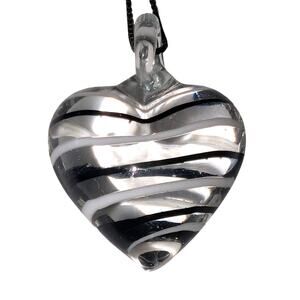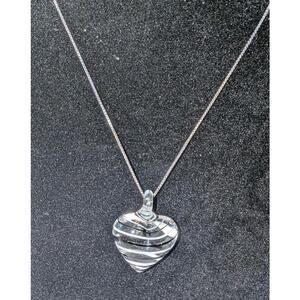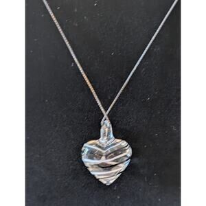 Murano Style Art Glass Necklace Heart Striped Pendant Sterling Silver Chain