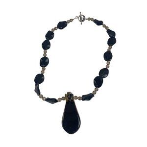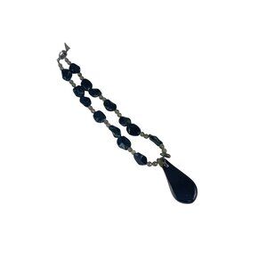 This elegant necklace boasts a striking black beaded design complemented by a stunning gold-toned teardrop pendant. The unique toggle clasp ensures secure wear while adding a hint of sophistication. Measuring 18 inches in length, this piece pairs effortlessly with formal attire or elevates casual ensembles, making it an ideal accessory.