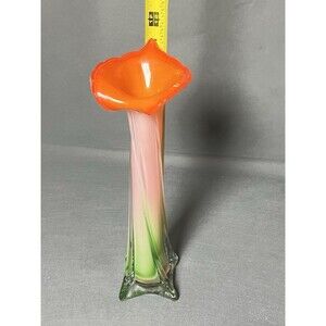 Murano Style Calla Lily Jack In the Pulpit Vase Art Glass Flower Orange Vintage