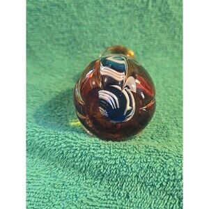 This Murano Style Glass Cat Paperweight in Amber with Blue White Swirl is a unique and artistic collectible piece. Made from crystal glass, this vintage original paperweight features a cat as its main subject, making it a perfect addition for cat lovers or collectors of animal-themed figurines. The intricate design and Murano production style add to the charm and value of this eye-catching piece.