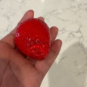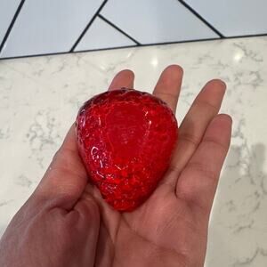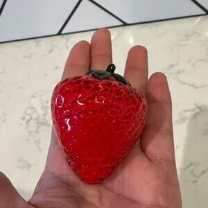 Murano Style Glass Strawberry decor trinket 4.0oz, 2” vibrant red green fresa