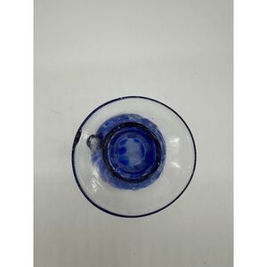 Murano Style Glass Vase Hand Blown w/ Handle 5” Blue