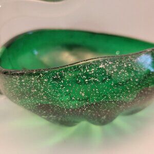 Murano Style Green & Clear Glass Swan Decorative Bowl