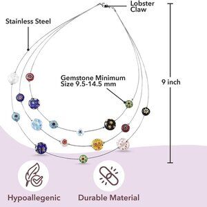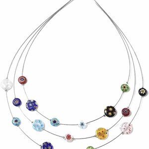 PRINCESS FLOWER NECKLACE - The princess layered necklace features glass with vivid millefiori patterns in different colors. A lobster lock secures this flower necklace