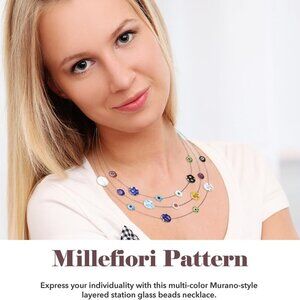 Murano Style Millefiori Glass Layered Necklace - Beaded Necklaces for Women Tren