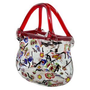 Murano Style Millefiori Red Art Glass Clutch Bag Purse Hand Blown Vase