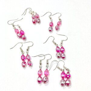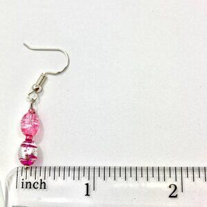 Murano Style Pink Silver Art Glass Bead Earrings Plated Dainty Dangle Handmade