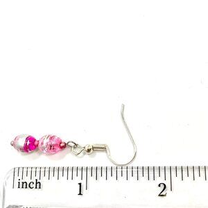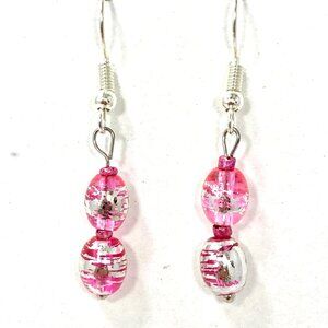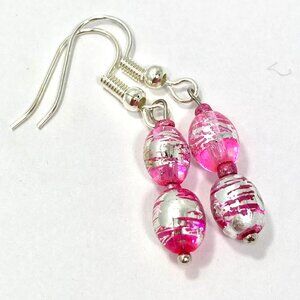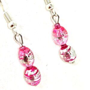 These Murano Style Pink & Silver Art Glass Bead Earrings