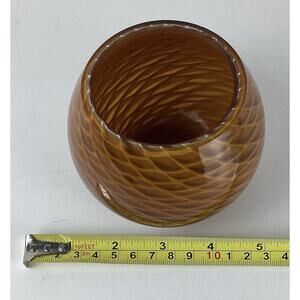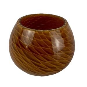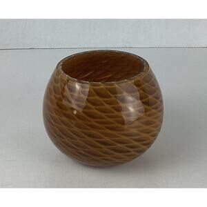 Murano Style Small Art Glass Vase Tan White Brown Swirl Thick Glass