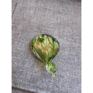 Murano Style Sommerso Art Glass Pendant | Green and Gold Floral Design