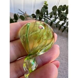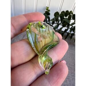 Murano style glass pendant, Sommerso art glass, floral glass jewelry, green and gold pendant, handmade glass pendant, unique art jewelry, Murano inspired necklace, artisan glass pendant, statement jewelry, gift for her.