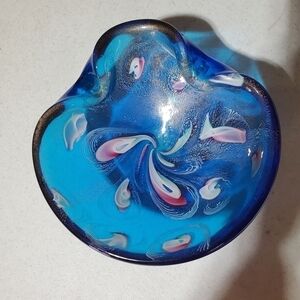 Murano Vintage Art Glass Bowl Sea Swirls with Gold Accent