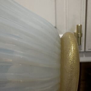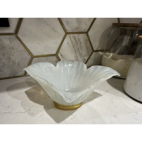 Beautiful murano art glass bowl with gold flecks at the base. I know very little about this one. It was found at an estate sale years ago, but I have found one for sale for thousands.