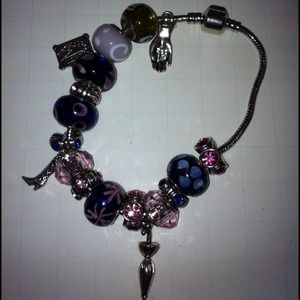 Murano beads and Victorian charms hand made by Belle. Large clasp jewelry for people w disabilities like ME.