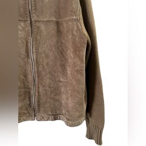 Murano brown leather and wool knit zip up jacket