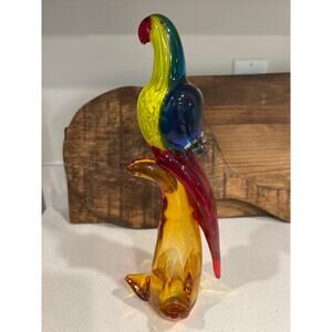 Solid Murano glass Parrott bird on an amber colored wave. Stands 14” tall and is solid and heavy. Excellent condition with no chips or cracks.