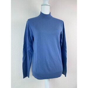 Murano women's small blue mock neck fine merino wool lightweight knit sweater