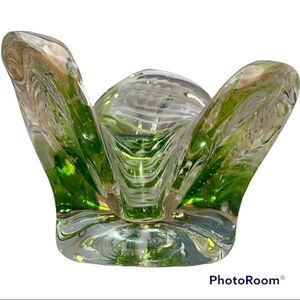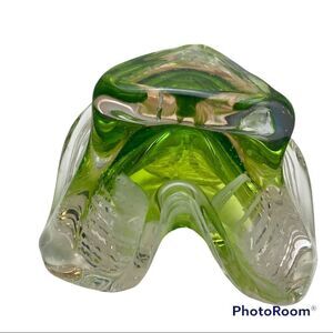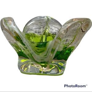 Murano Art Glass Bowl Catchall GREEN, WHITE & CLEAR Italy