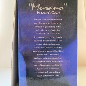 The history of Murano art glass is one of the most important in the tradition of glassmaking. By the mid 13th eentury, Venice had established itself as one of the foremost producers of art glass in the world. Towards the end of that century, all of the glassmaking factories were relocated to the tiny nearby island of Murano. One of the reasons was to contain the eraftsmen and prevent them from revealing their seerets to the outside world. Today, in partnership with Crystal Clear, the tradition continues with pieces of great beauty and ineredible value,