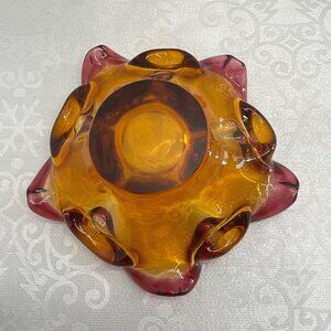 Murano-Style Hand-Blown Glass Amber & Purple Art Ashtray Bowl