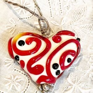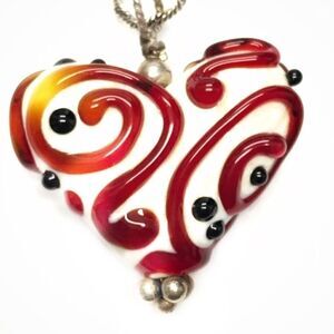 Murano glass hand made lampwork heart twisted sterling chain red white black